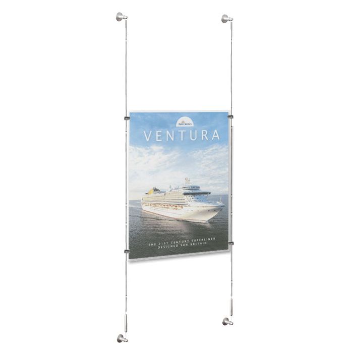 Part of our range of Cable Display kits. Improve your window display with our complete suspended wire system. We have a wide selection of kits available in both portrait and landscape format, a range of popular sizes and three types of mounting fixings available.