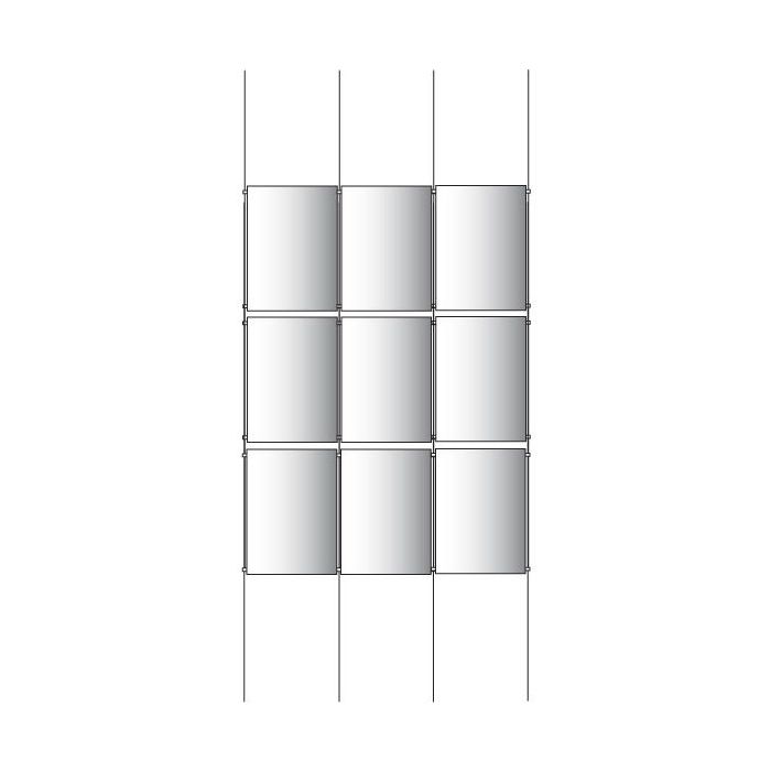 Part of our range of Cable Display kits. Improve your window display with our complete suspended wire system. We have a wide selection of kits available in both portrait and landscape format, a range of popular sizes and three types of mounting fixings available.